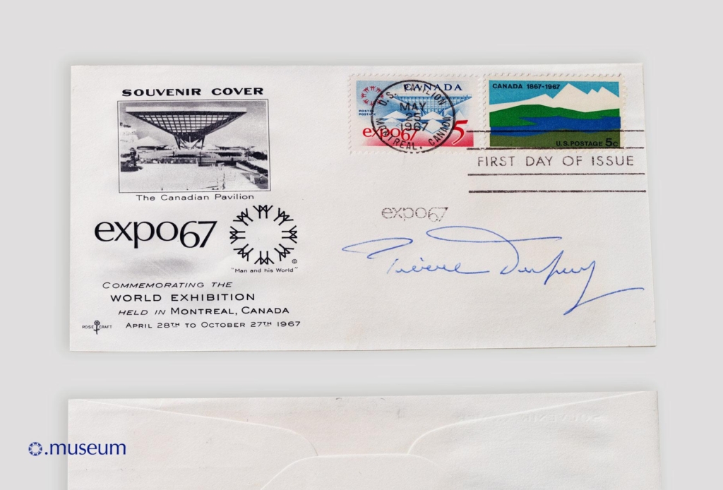 Ouvrir le document Enveloppe philatélique du « Premier Jour d’émission ». Elle comporte le timbre émis par Postes Canada pour Expo 67. Il est tamponné par le service postal du Pavillon américain. Conjointement y figure le timbre américain commémorant le 150e de la Confédération canadienne et porte un tampon avec la mention « Premier jour d’émission ». L’enveloppe est exceptionnelle,…