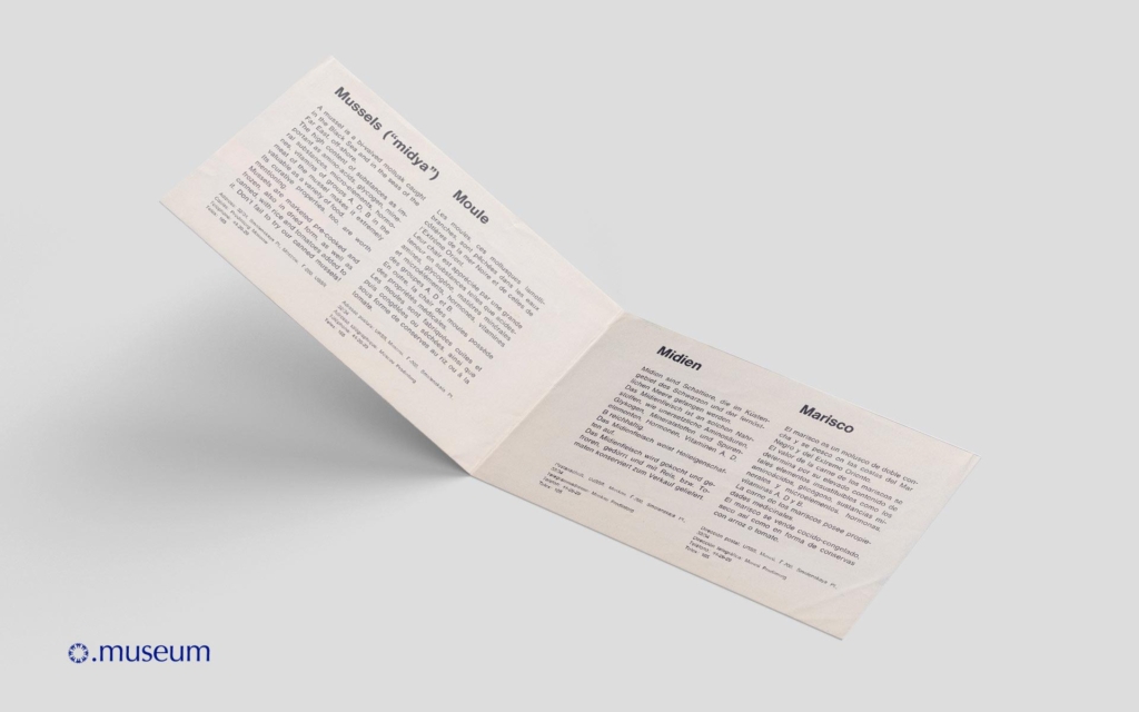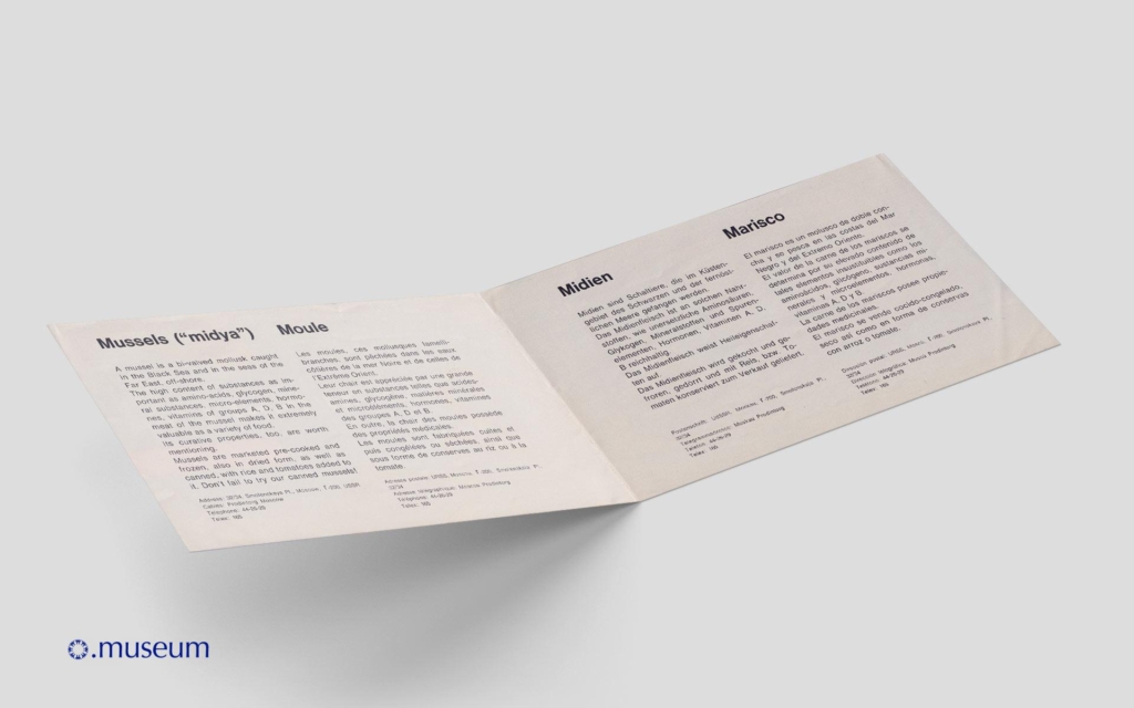 Dépliant promotionnel sur le commerce des moules par le bureau du commerce extérieur de l’Union Soviétique.