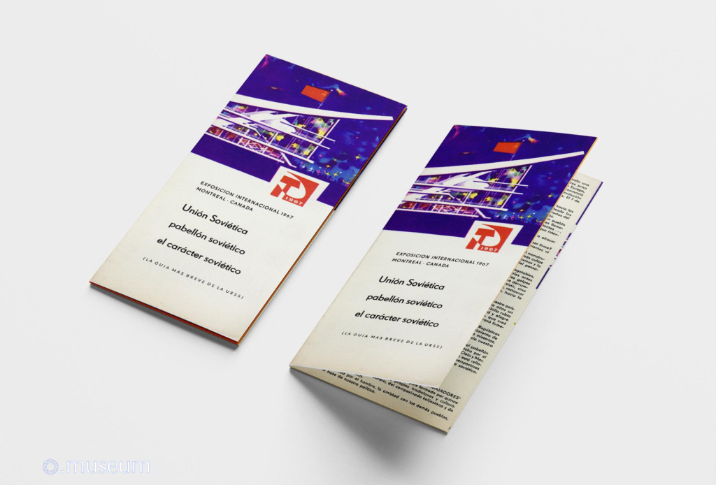 Open the document This brochure is one of the most widely distributed documents to the public during Expo 67. It is easily found for resale on online auction sites. It is very graphic and colorful, drawing inspiration from a space exploration theme. It describes the Soviet pavilion, with a map of the different levels. It…