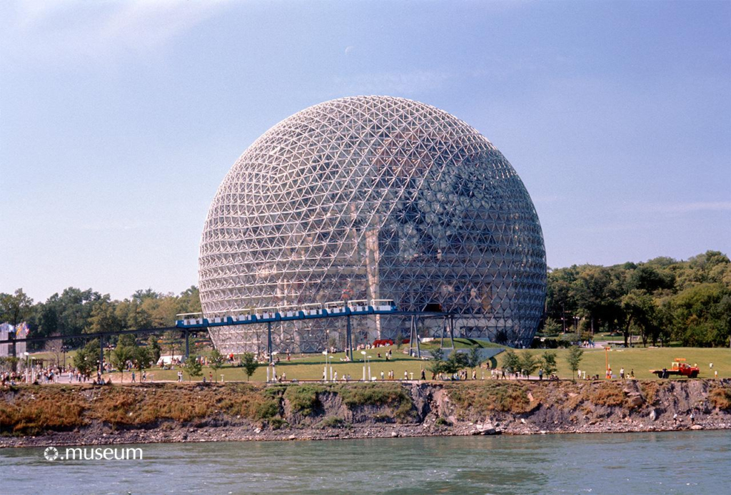 This photo showcases the United States Pavilion, designed by architects Richard Buckminster Fuller and Shoji Sadao. Its impressive geodesic structure, made of an aluminum and acrylic mesh, symbolized American technological innovation and modernity. With a diameter of 76 meters and a height of 41 meters, the sphere housed exhibitions focusing on the United States’ scientific, space, and cultural advancements. Inside, visitors experienced an immersive journey highlighting technological achievements such as the Apollo space program. In the foreground, the minirail, an iconic mode of transportation at Expo 67, can be seen offering visitors spectacular views of the pavilions and the site. Source : CCWE, General Report of Expo 67.