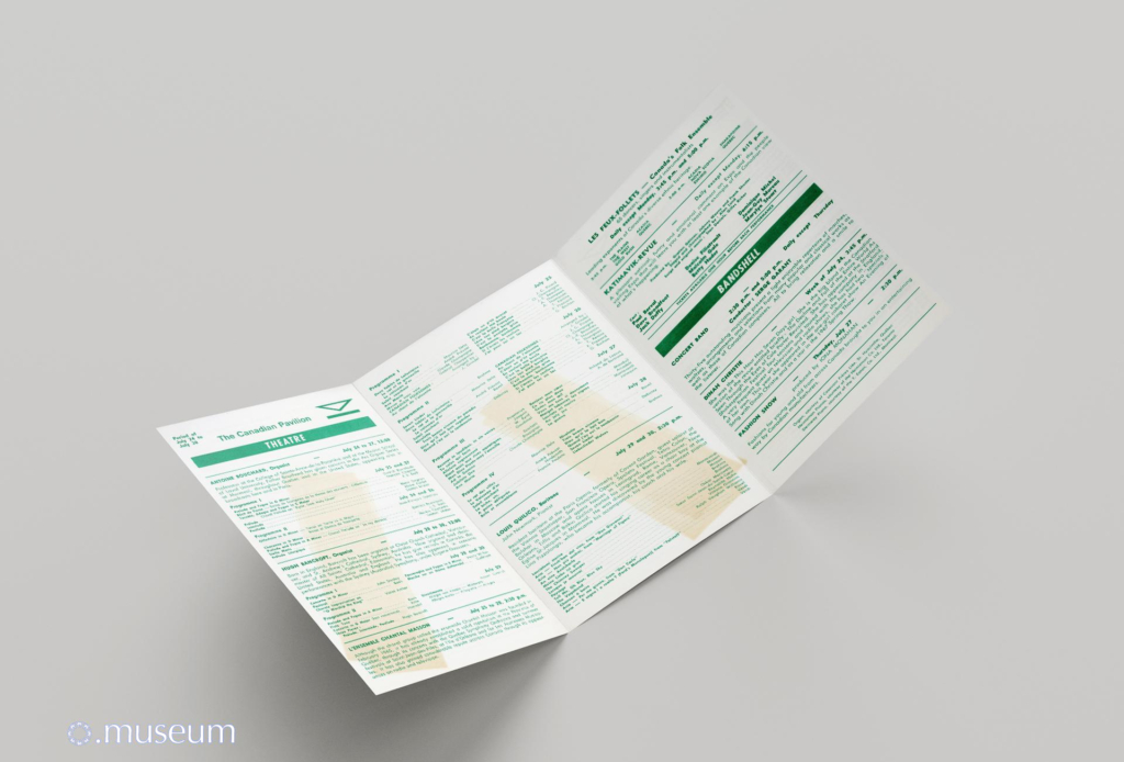 Open the document Cultural programming of the Canadian Pavilion for the period from September 4 to September 10, 1967. Theater and bandshell.