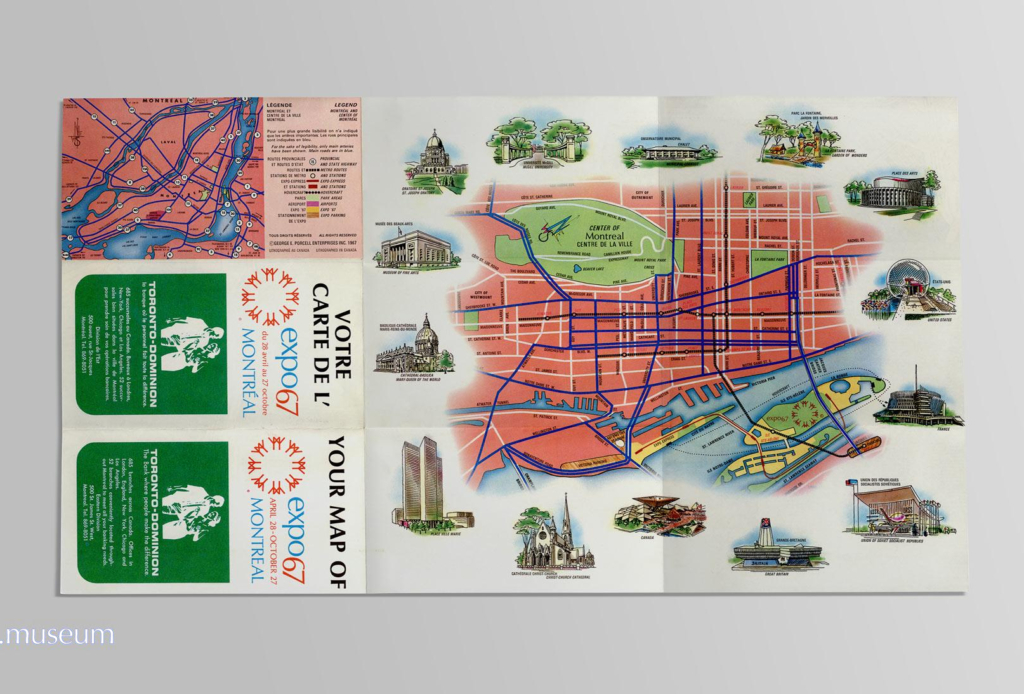 Open the document Map of the Expo 67 site. Promotional document distributed by TD Bank.