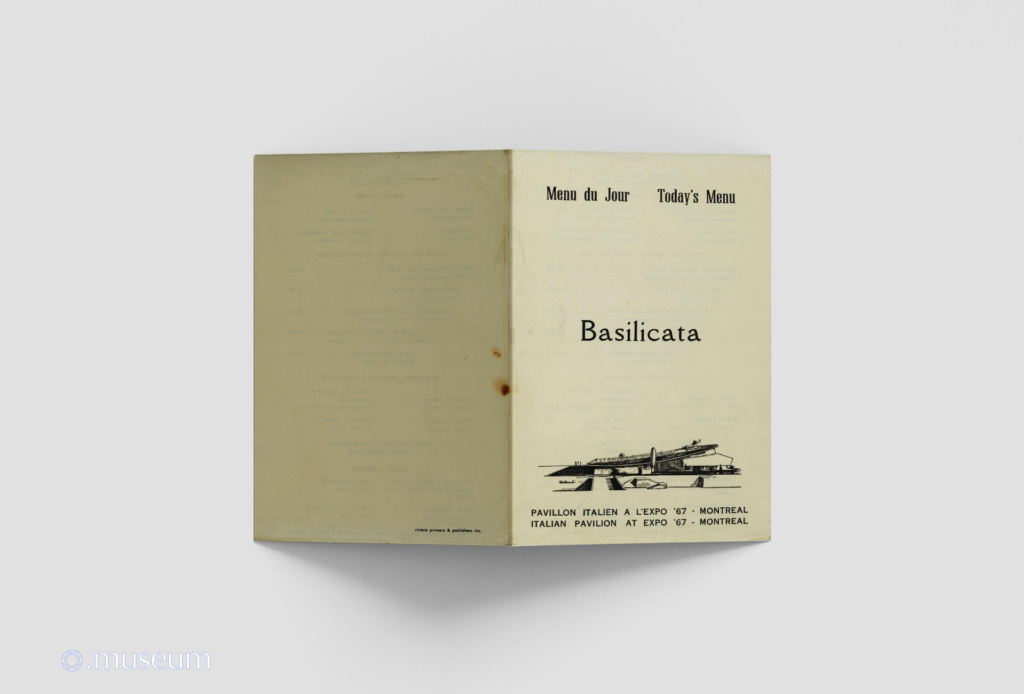 Ouvrir le document Menu du restaurant du pavillon italien. Thématique sur la région de la Basilicate.