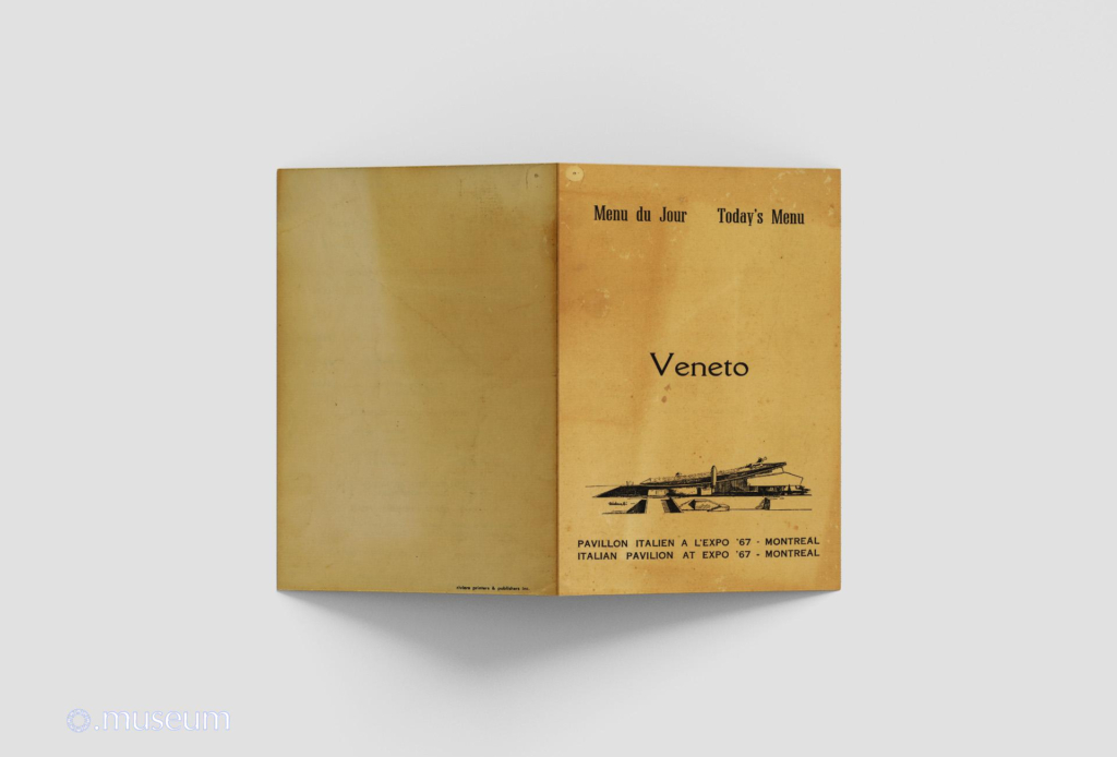Ouvrir le document Menu du restaurant du pavillon italien. Thématique sur la région de la Vénétie.
