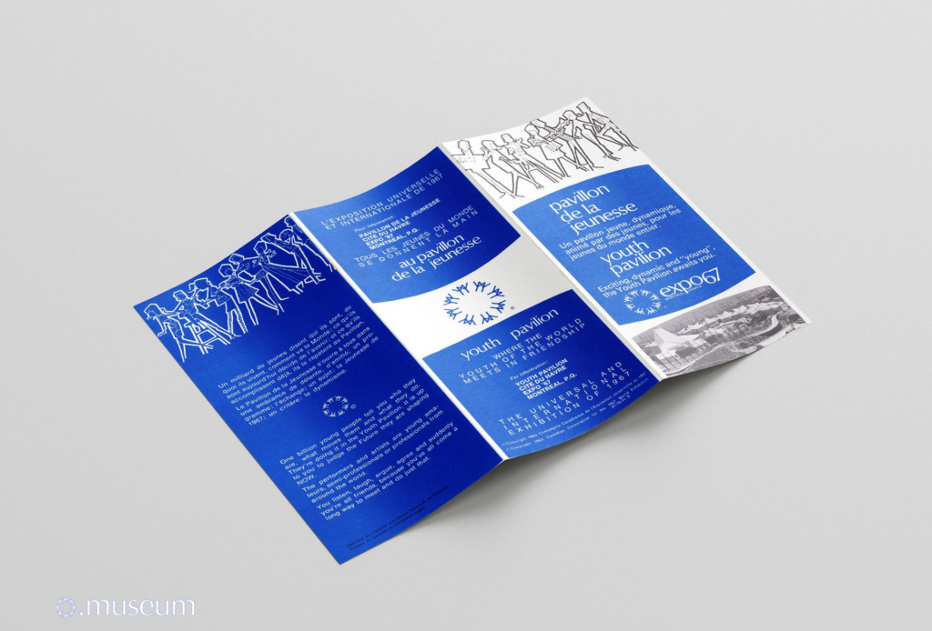 Ouvrir le document Dépliant présentant le Pavillon de la Jeunesse à Expo 67, un espace dynamique dédié à l’échange culturel et à l’expression artistique des jeunes du monde entier. Il propose des spectacles, débats, compétitions sportives et activités participatives, reflétant l’énergie, la créativité et les aspirations de la jeunesse mondiale.
